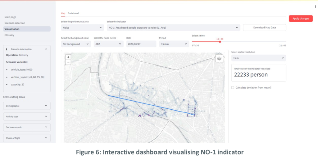The toolset has been validated through real-life case studies in Madrid and stakeholder consultations with experts from aviation, urban planning, and public health. The dashboard is publicly available and ready to support further testing and uptake by cities and U-space actors.